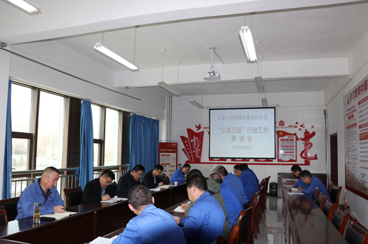 - 為全面貫徹省市“三抓三促”行動總體部署,2月27日,豐收機械公司召開動員部署會議,集中學習了省委、市委、市國資委黨委及市產投集團公司黨委“三抓三促”行動動員部署會議精神,并對《甘肅豐收機械有限責任公司“抓...